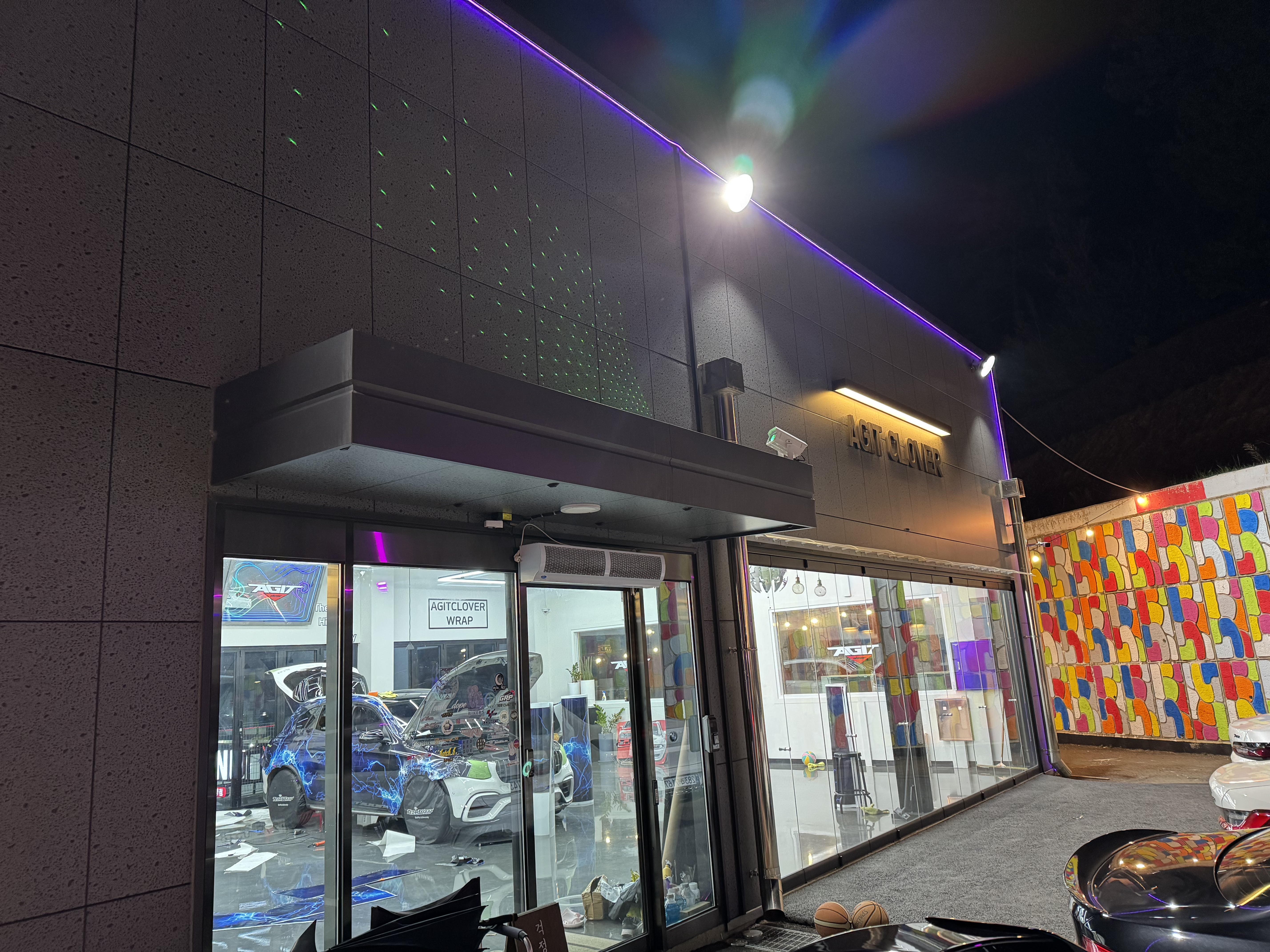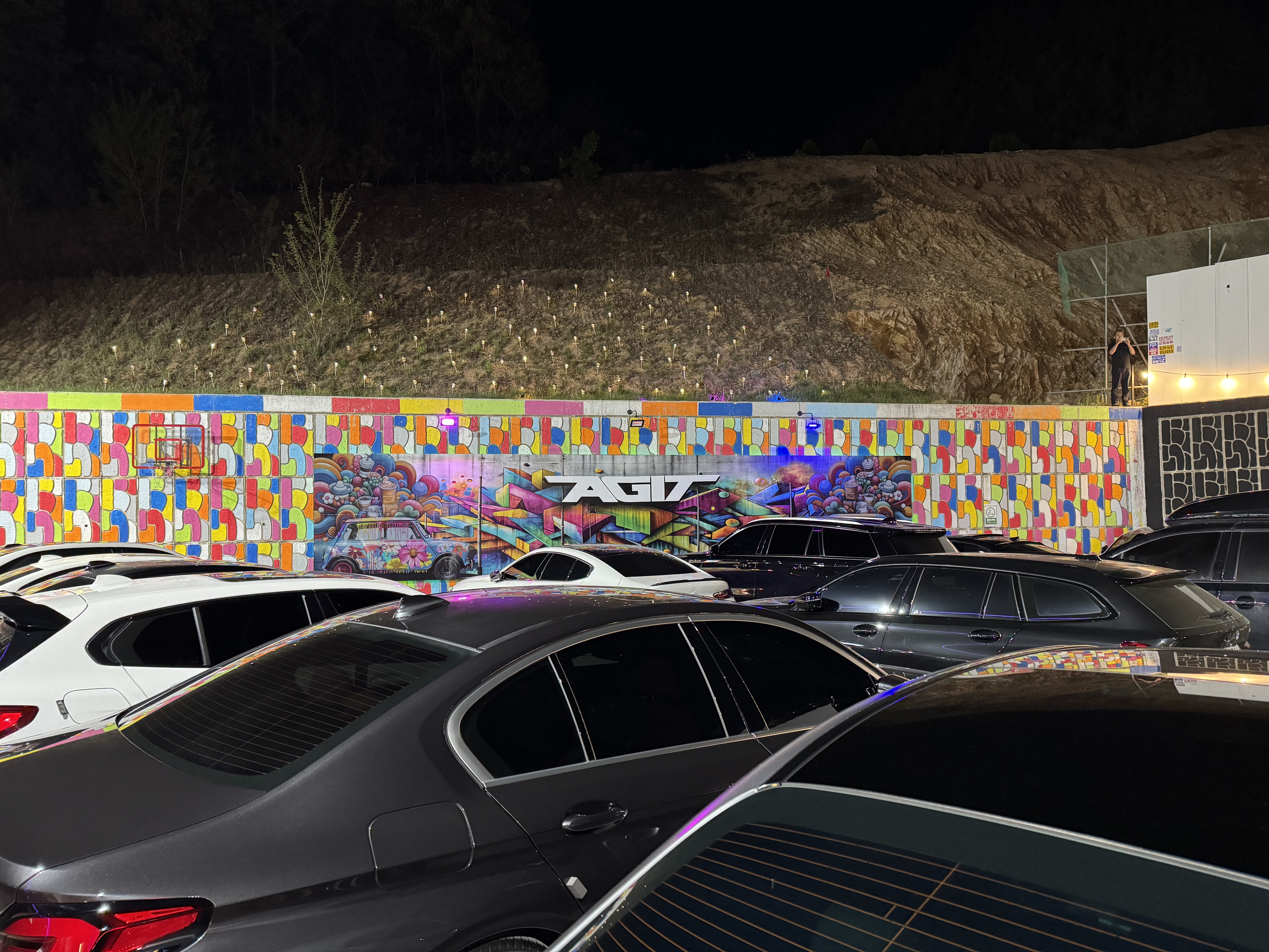 카페 아지트7은 어둠 속에서도 눈에 띄는 네온 조명과 포토존 벽화가 인상적인 곳이였습니다.